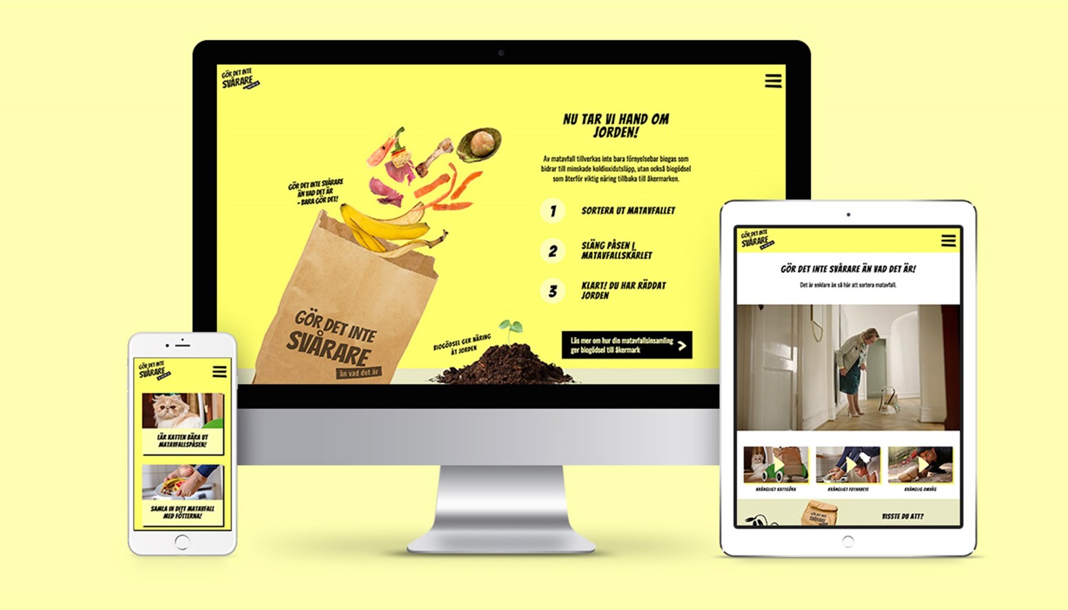 Kampanjen består av 3 filmer, 1 kampanjsida med artiklar och information kring matavfallsinsamling, tryckmaterial som klistermärke, matavfallspåse och tryckannonser.