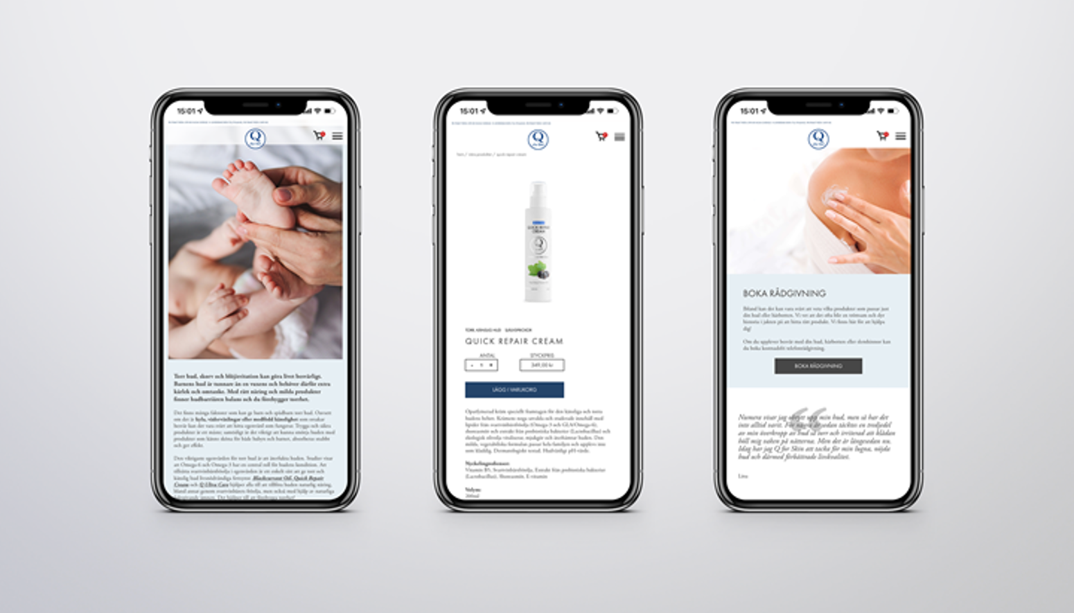 Utmaningen består i att hitta konsumenterna som är i behov av Q for Skins produkter, och då blev våra artiklar om olika hudåkommor och hur dessa kan lösas med egenvård en viktig del av webbplatsen.