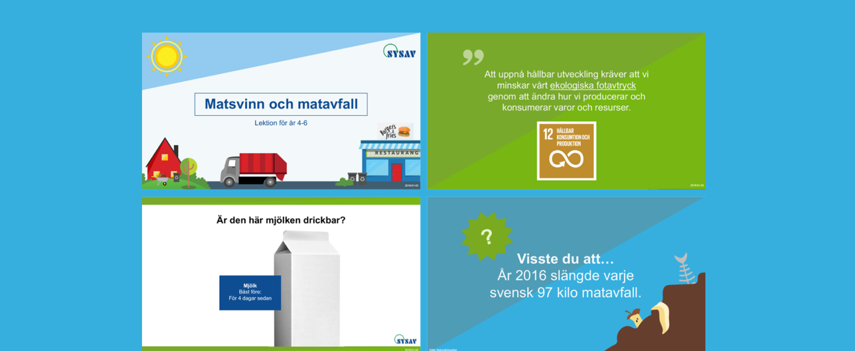 Blinka tog tillsammans med Sysavs miljöpedagoger fram tre lektionsunderlag för Hållbar utveckling, Matavfall och matsvinn samt Farligt avfall. Som bollplan hade vi även pedagoger på en Malmöskola.