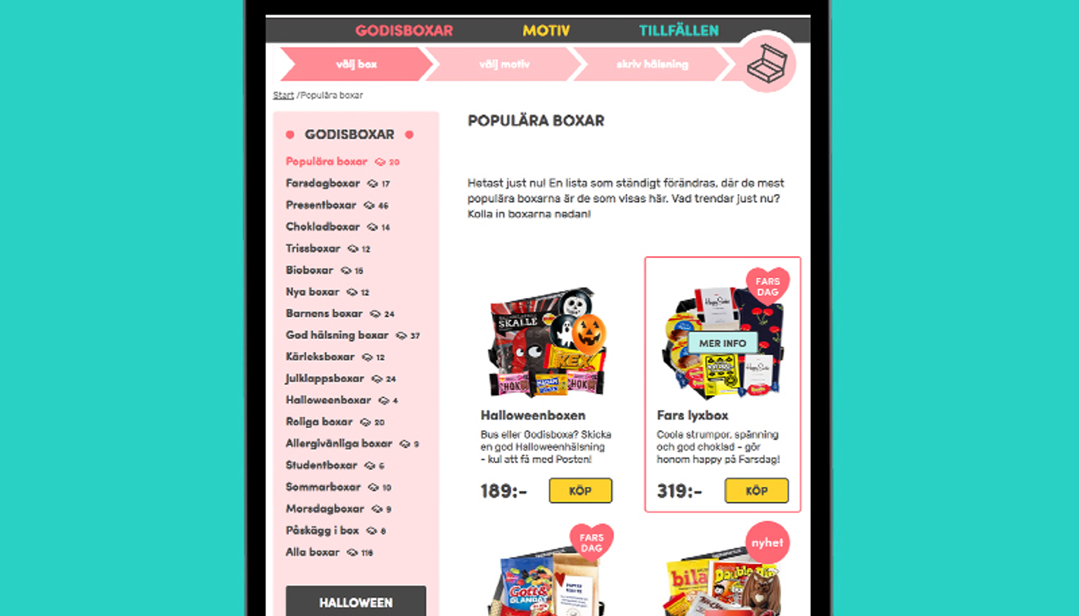 Kom till webbplatsen här: https://www.godisboxen.se/