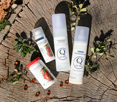 Q for Skin erbjuder näringsrika, högkvalitativa och multifunktionella hudvårdsprodukter för personer med mycket känslig och torr hud, torra slemhinnor och andra hudproblem.